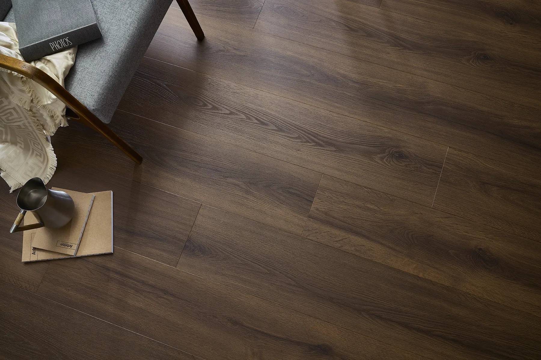 - Eigenschaften: Holzfaserträger mit Dekoroberfläche. Optisch stark, haptisch härter und lauter als Vinyl.